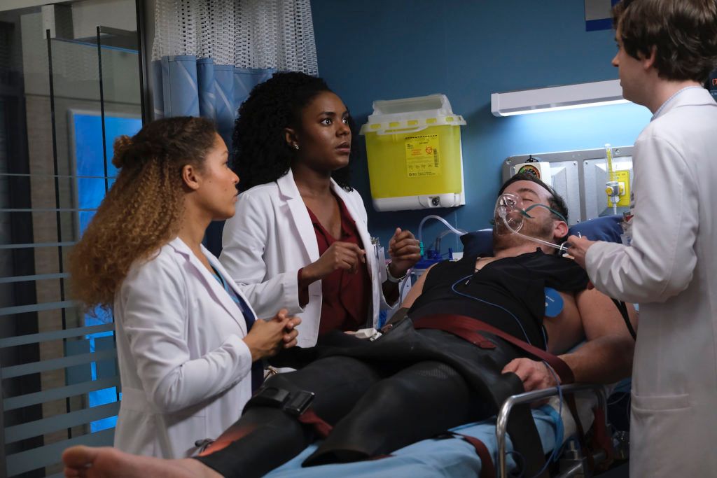 In the episode’s cold open, the doctors are working on a triathlete with respiratory problems and need to grab a chest tube from the operating room’s automated dispensing system. But for some reason, it won’t open, forcing surgical resident Dr. Claire Browne to smash it open with an ax. A nurse soon explains that the computer systems are down throughout the hospital.